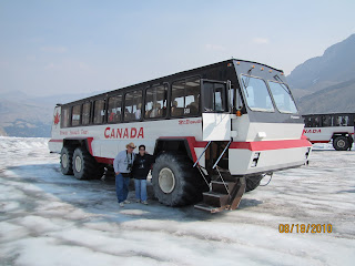 On one of our days in Glacier, we took the famous "Red Bus" tour. There have been 3 generations of the Red Bus, first starting in 1936. When the last generation of buses started to break down, the park wanted to get rid of them. After protests, the buses were refurbished by Ford Motor Company at the cost of $250,000 each! Each coach holds about 12 passengers. They are convertible, so unless it is raining, the top is down and it is great to be able to see the mountains and scenery above you as you are driving. At certain times, when the vehicles are stopped, the passengers are allowed to stand up in the bus and take pictures. The vintage coach drivers were called "Jammers", because they could be heard jamming the gears on the original stick-shift vehicles when driving up and down the mountains.